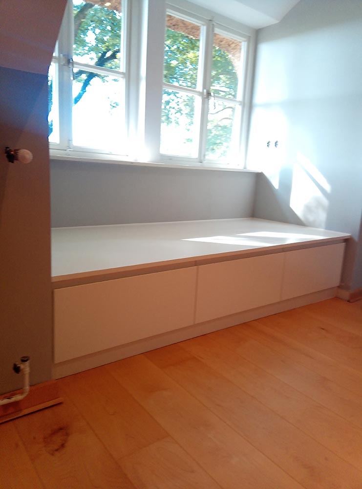 - An die Dachschräge angepasst oder um die Ecke gedacht