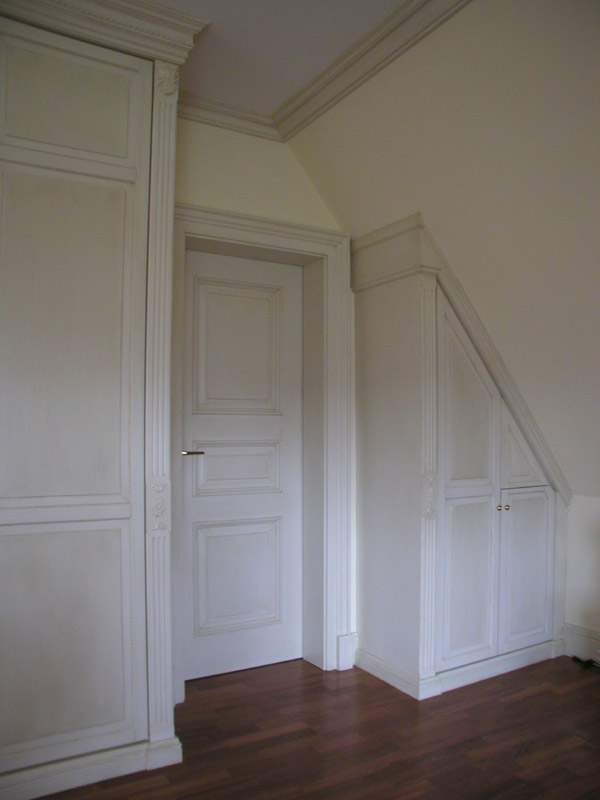 - Von Wand zu Wand und vom Boden zur Decke mit Passleisten eingefasst